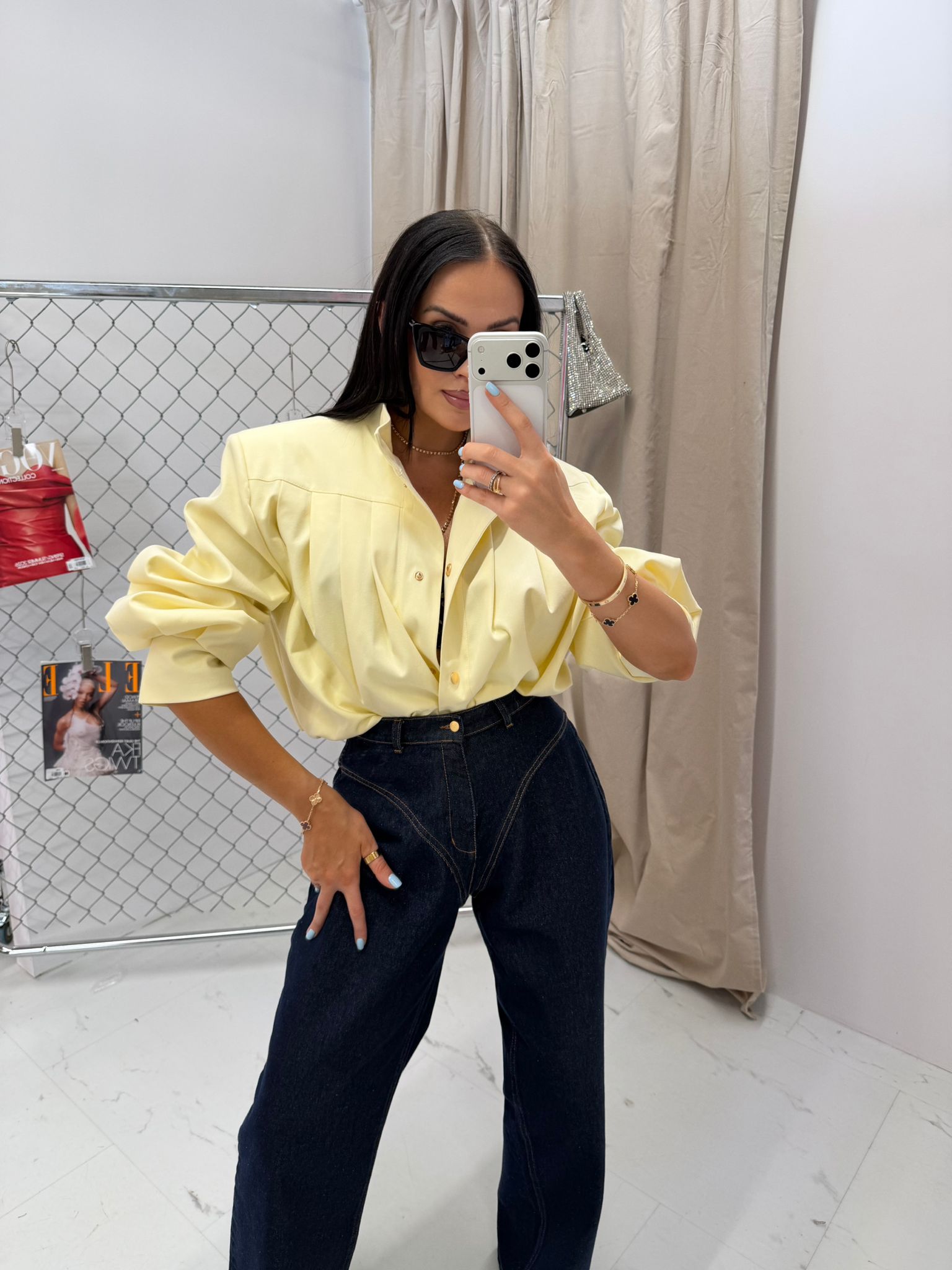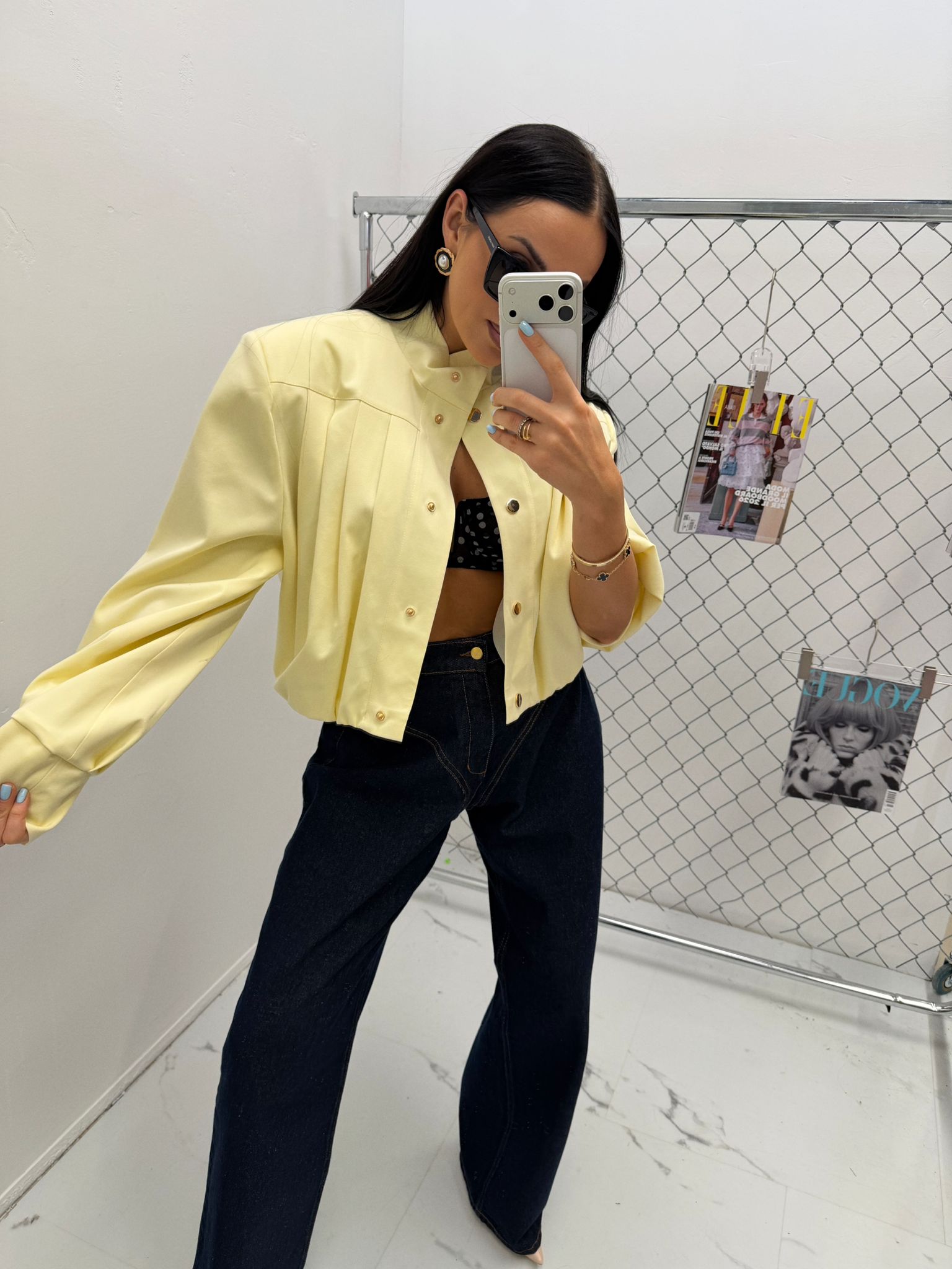 Designerska bomberka z efektownymi, bufiastymi rękawami, które dzięki zakładkom i marszczeniom nadają sylwetce geometryczny charakter. Posiada elegancką stójkę, złote napy oraz elastyczne ściągacze. Wnętrze wykończone gładką podszewką zapewnia komfort noszenia.