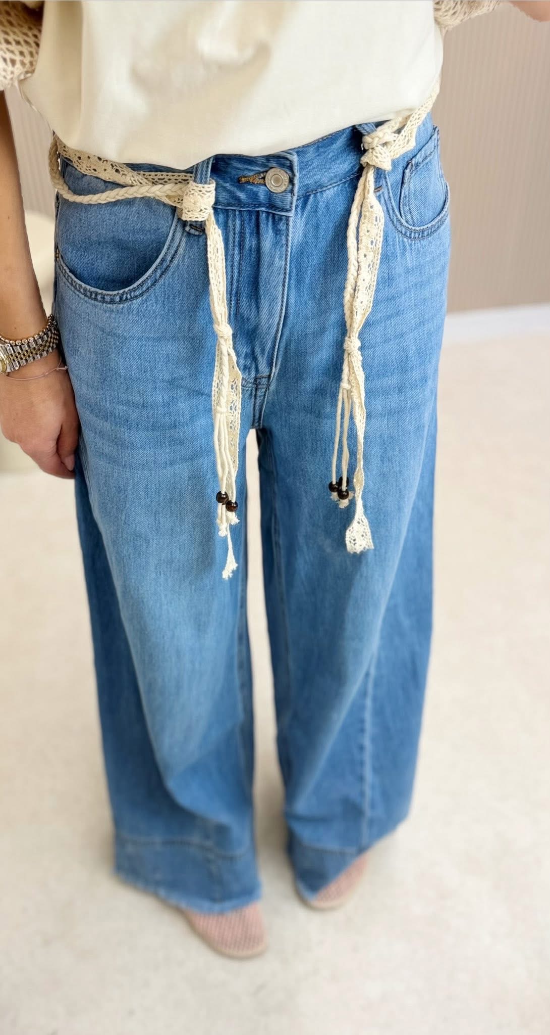 Miękkie jeansy CAMELIA z ozdobnym paskiem o luźnym kroju, które zapewniają wygodę i swobodę ruchów. Idealne do codziennych stylizacji.