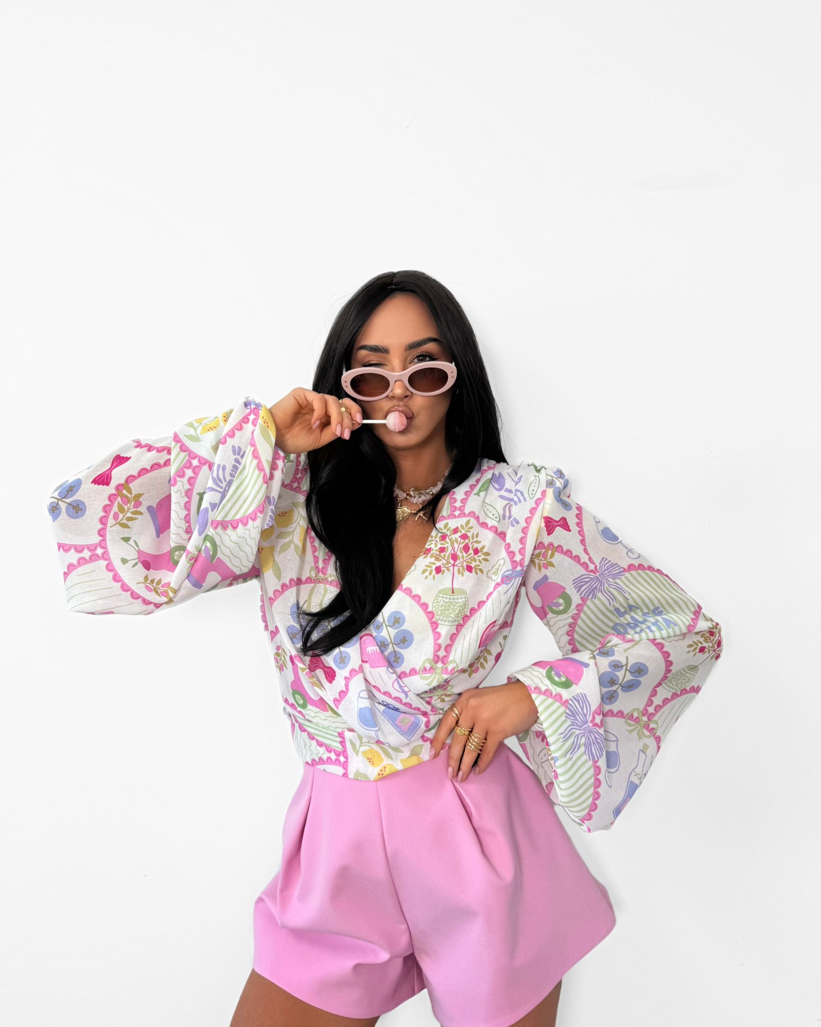 Wyjątkowa koszula CAPRI w śródziemnomorskim stylu zachwyca bogatym wzorem i kobiecym krojem. Kopertowy dekolt w kształcie V oraz wiązanie w pasie podkreślają sylwetkę, a ozdobne rękawy dodają jej charakteru. Lekki materiał zapewnia komfort i sprawia, że idealnie sprawdzi się w letnich stylizacjach.