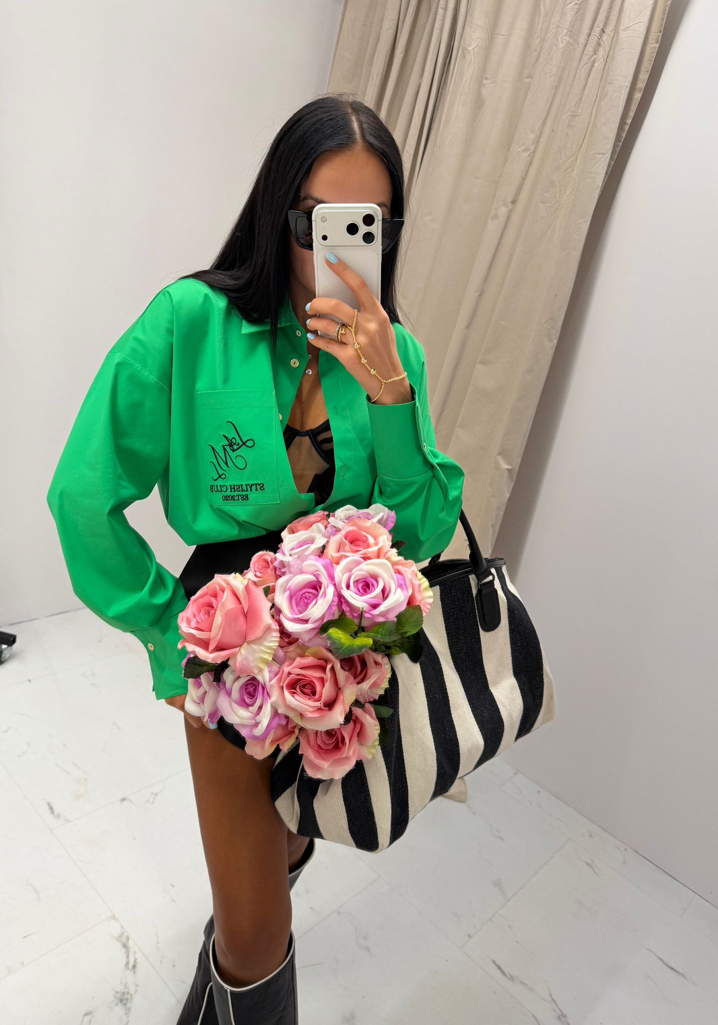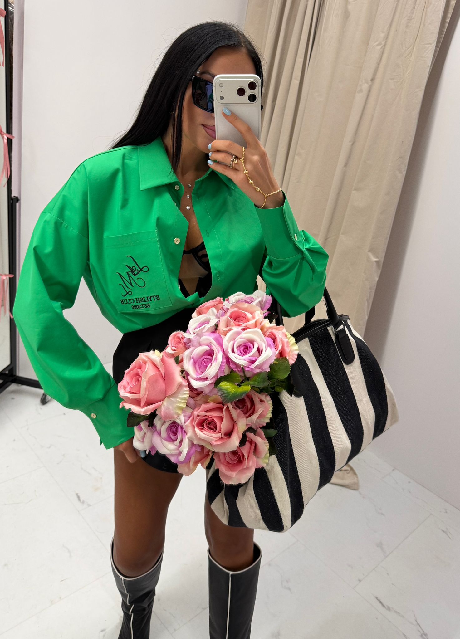 Zielona koszula MARRON w intensywnym, świeżym odcieniu przyciąga uwagę i dodaje charakteru stylizacji.