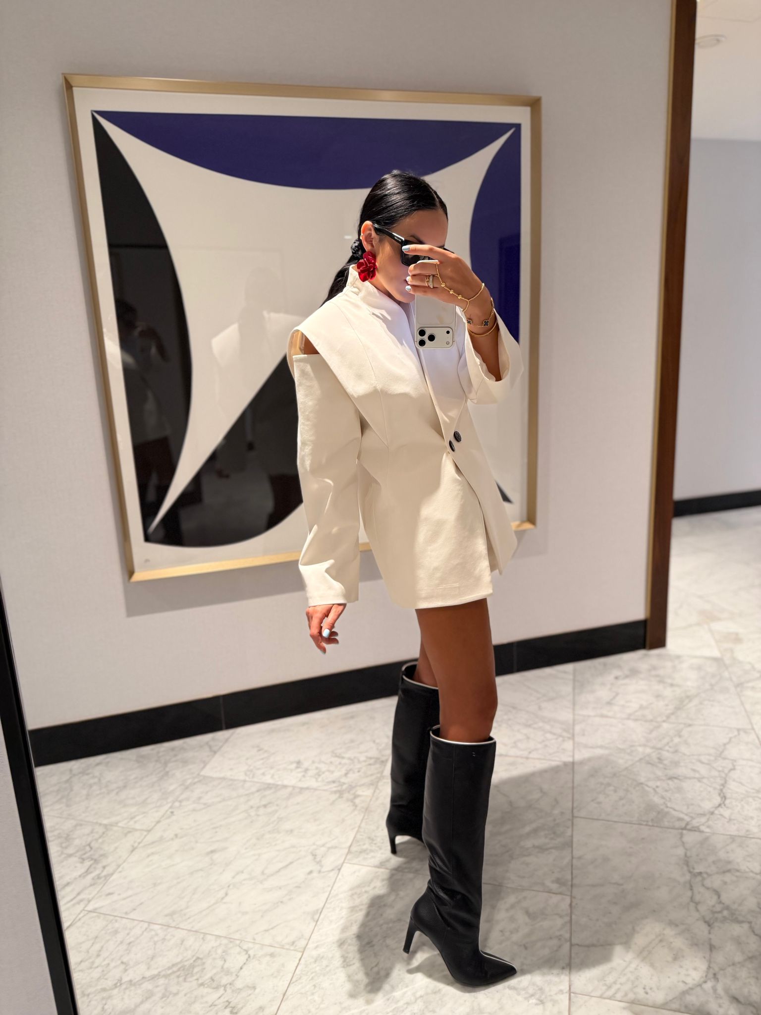 Marynarka z wycięciami na ramionach AURA to nowoczesna interpretacja klasyki. Podkreśla sylwetkę i dodaje stylizacji odważnego, modowego charakteru. Idealna na wyjścia, gdy chcesz się wyróżnić, zachowując elegancję.