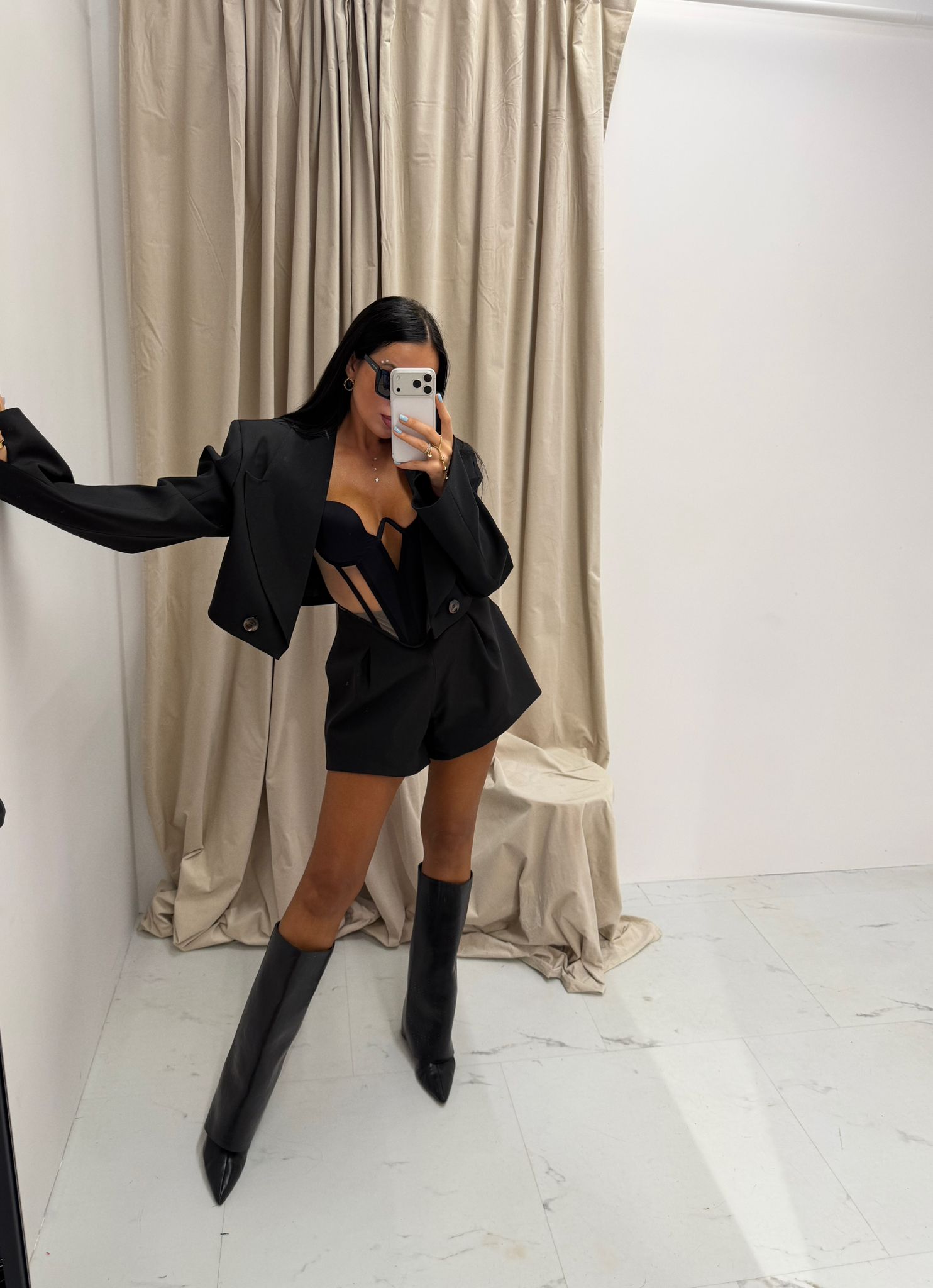 Krótka marynarka SHADE z otworem na kciuk to nowoczesny akcent w stylizacji. Nietypowy detal nadaje jej oryginalnego charakteru, a krótki krój podkreśla sylwetkę.