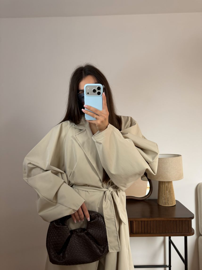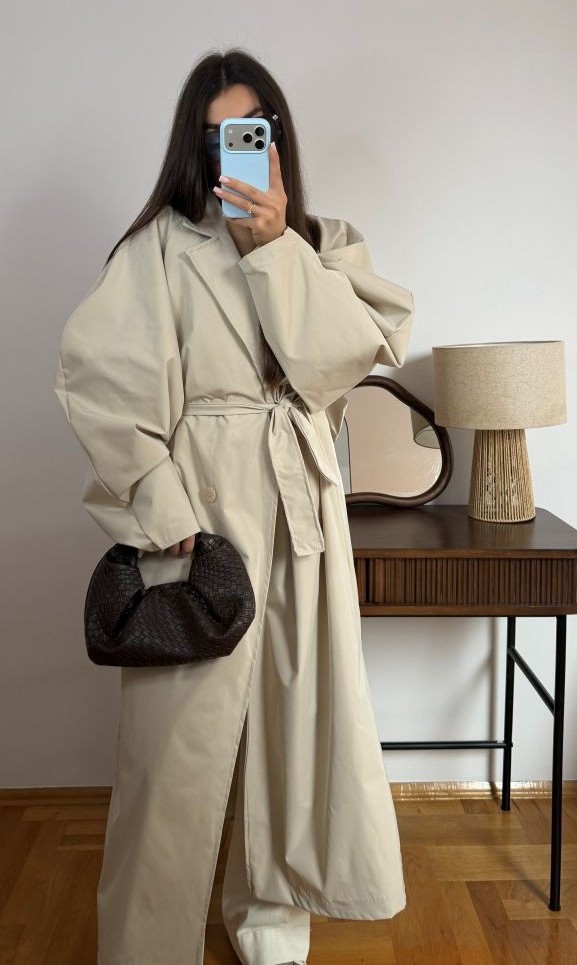 Płaszcz o modnym kroju z bufiastymi rękawami, który nadaje stylizacji wyrazistego, kobiecego charakteru. Starannie zaprojektowana forma łączy elegancję z nowoczesnym akcentem, zapewniając komfort noszenia i efektowny wygląd.