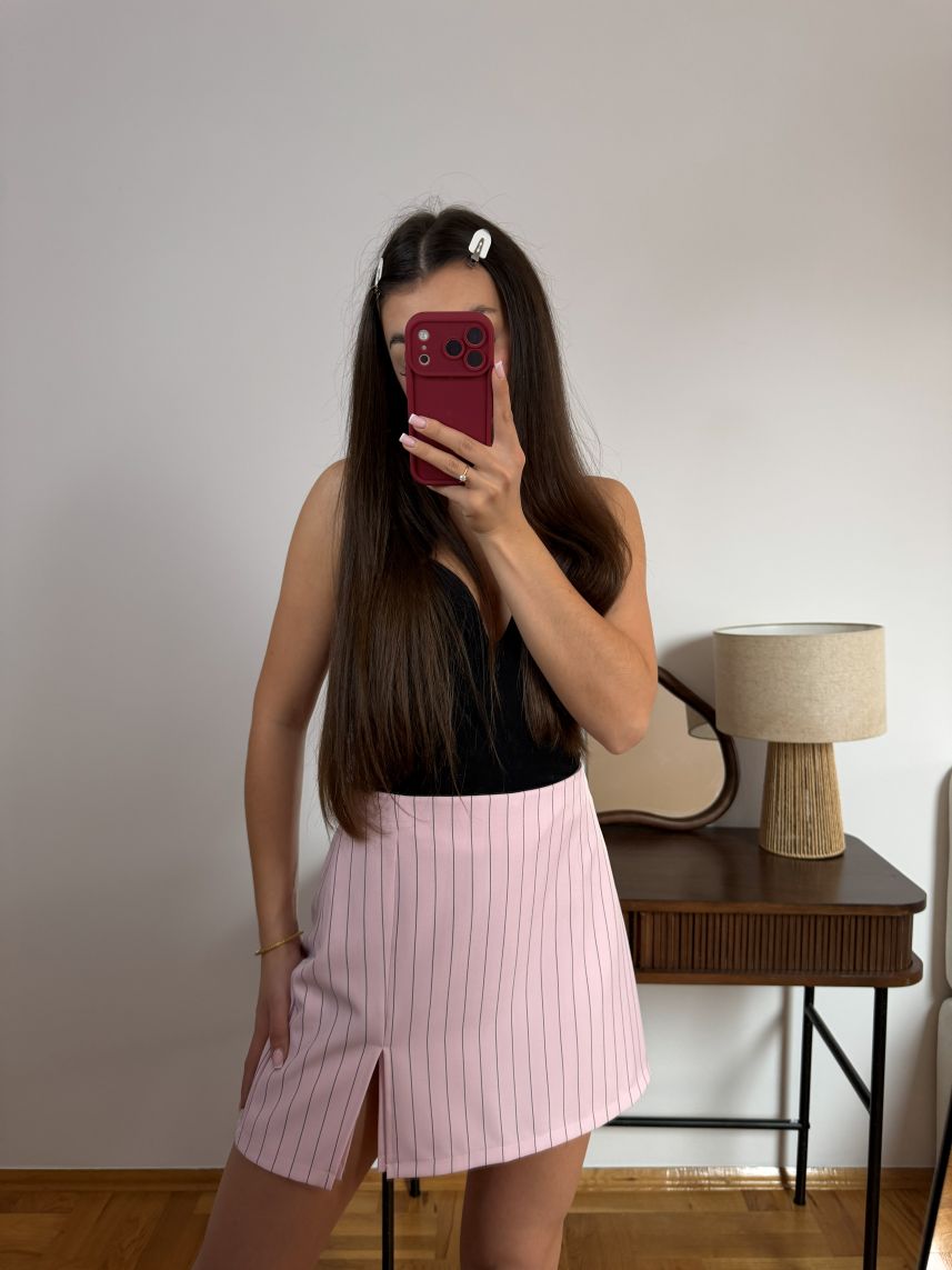 Spódnico-spodenki z efektownym rozcięciem, łączące wygodę spodenek z kobiecym charakterem spódnicy. Lekki, swobodny fason zapewnia komfort noszenia, a modny detal w postaci rozcięcia dodaje stylizacji nowoczesnego, dynamicznego akcentu.
